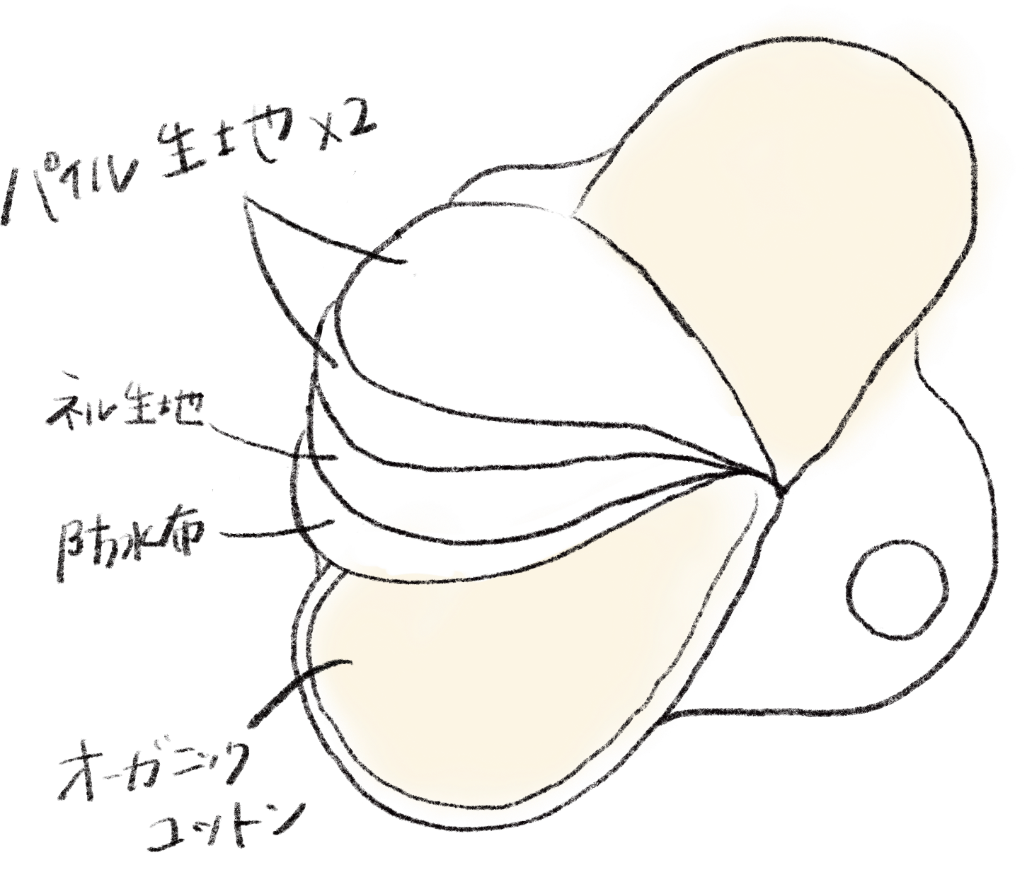 パイル(タオル)生地とは、吸水性が高い事が大きな特徴です。そのパイル生地を2枚構造にした事で、より吸水率がUP。赤ちゃんのおくるみにも使われているパイル生地は、ふわふわとした独特の弾力も兼ね備えています。まるで毛布に腟が包み込まれているような心地良さです。