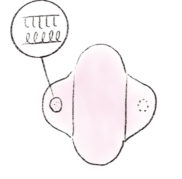 多くの布ナプキンはボタンで留める仕様になっています。ボタン留めだと座った時や自転車に乗っている時の衝撃で痛みや不快感が出てしまいます。マジックテープにすることで衝撃から守ってくれ、柔らかい付け心地です。デリケートゾーンに優しい作りになっています。マジックテープにすることで、 生理中でもいつもと変わらない使い心地です。